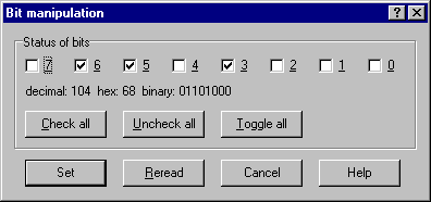 XVI32 allows to view or set the bits at the current address.