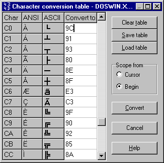 | DOSWIN.XCT | DOS codepage 850 | Windows codepage 1252 |