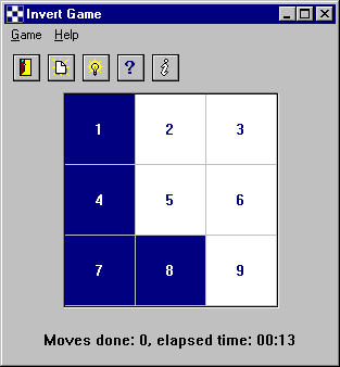 Left: Main window of the invert game. Right: Tip window showing the optimal moves.
