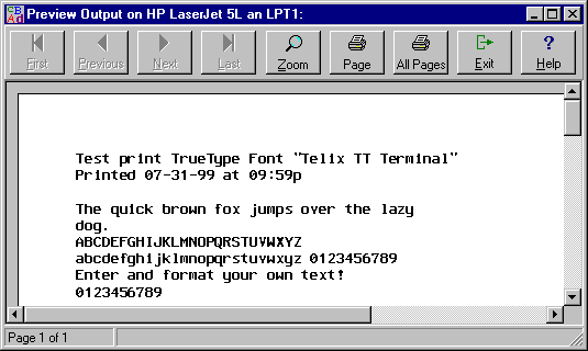 Print preview window of TTFMan